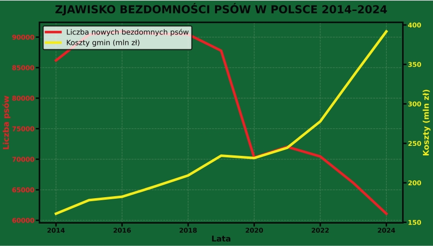 Uwaga! Oto świeże wyniki z naszego monitoringu gmin. W 2024 r. gminy zajęły się 61 075 nowymi bezdomnymi psami. Koszt jaki poniesiono na ten cel z publicznych pieniędzy wyniósł 391 770 720 zł. Wkrótce zaprezentujemy bardziej szczegółowe statystyki.